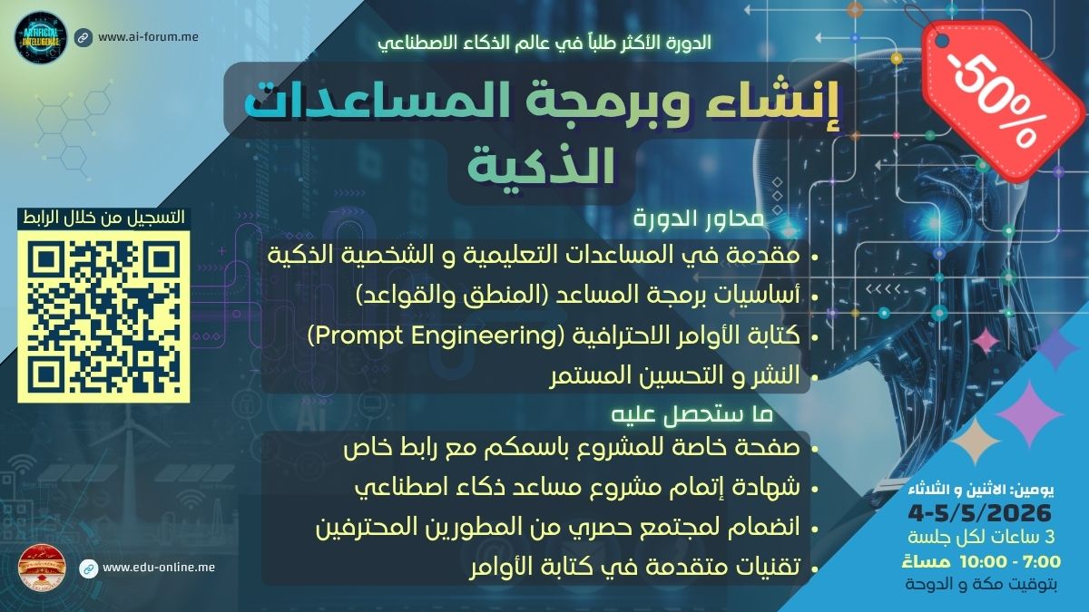 🎁 سجل اﻵن في برنامج "إنشاء وبرمجة المساعدات الذكية"